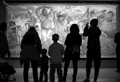 2月19日,在中国美术馆民族与时代——徐悲鸿主题创作大展现场,观众在经典画作前驻足观看。这个...